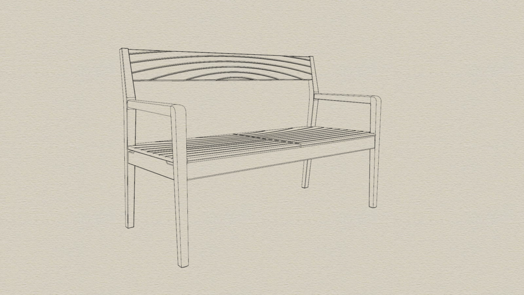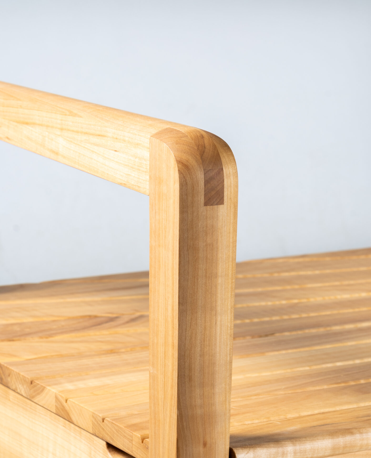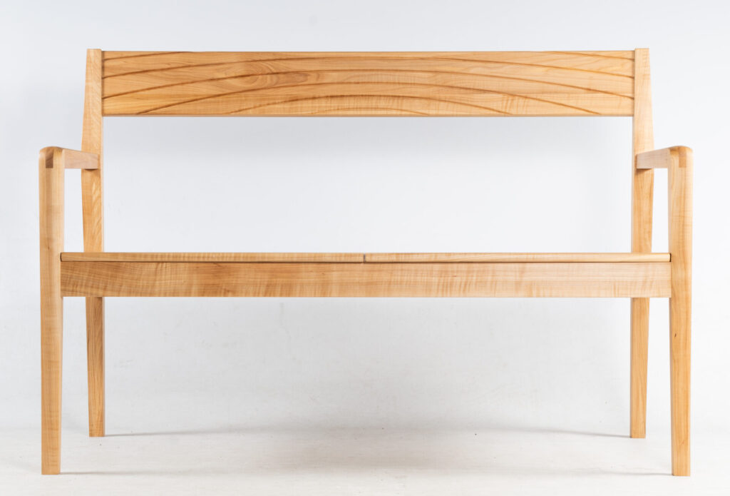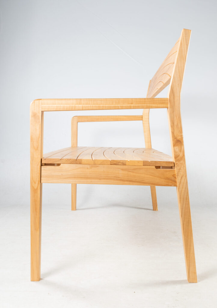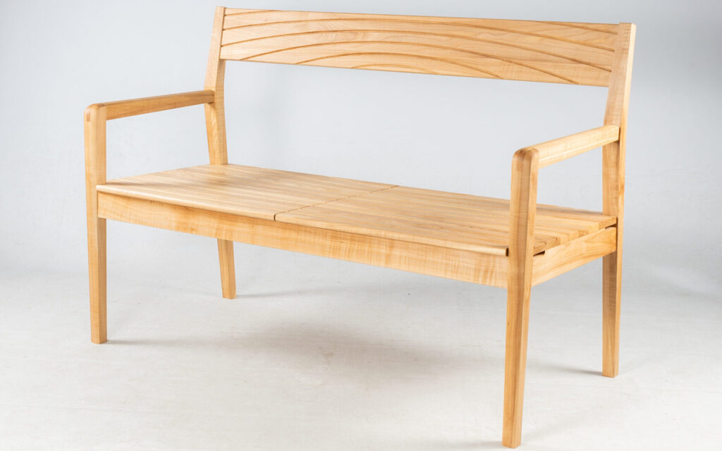 Säde – The competition work for Taitaja 2023. Säde, which means Ray, brings the sunshine to your home or terrace. This solid wooden bench is a mixture of the old and the new, past and the present, tradition and modern living. Take a moment to sit, plan or reflext.